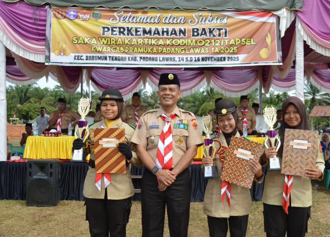 Tapsel - Kodim 0212/Tapsel secara resmi menutup kegiatan pembinaan Pramuka Saka Wira Kartika melalui upacara yang digelar di Desa Tandihat Kec. Barumun Kab. Padang Lawas (Palas), Minggu (16/11/2025)