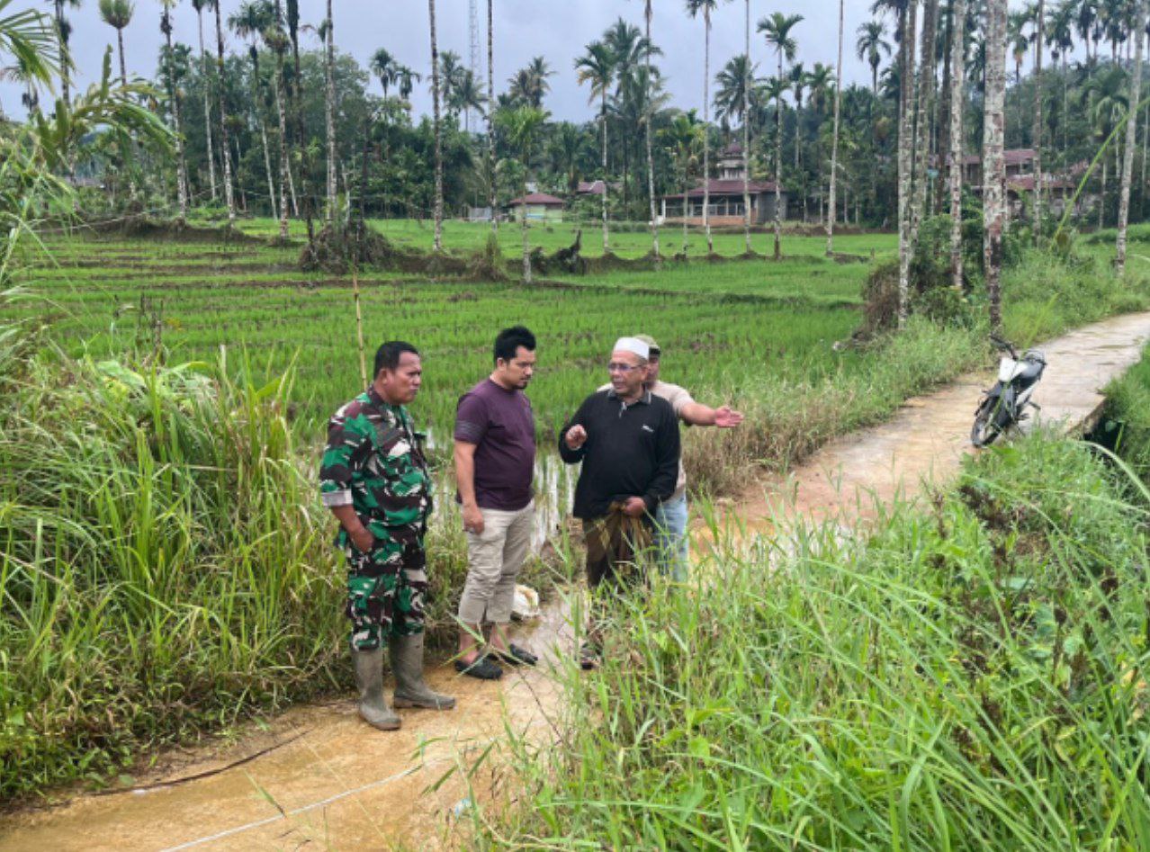 Batang Natal — Danramil 16/Batang Natal Kodim 0212/Tapsel Kapten Inf Zamril meninjau titik lahan yang diusulkan untuk pembangunan Koperasi Desa/Kelurahan Koperasi Merah Putih (KDKMP) di Desa Ampung Julu Kecamatan Batang Natal Kabupaten Mandailing Natal, Sabtu (23/11/2025). Peninjauan dilakukan bersama Forkopimca dan pemerintah desa serta pengurus koperasi merah putih sebagai bagian dari tindak lanjut program nasional pemberdayaan ekonomi desa.