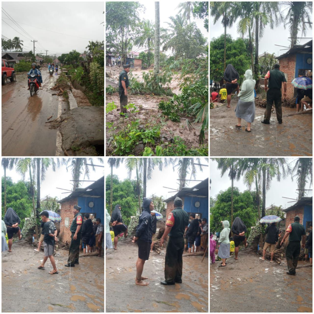Babinsa Sertu Abral menjelaskan, bahwa banjir disebabkan oleh tingginya intensitas hujan yang mengguyur sejak beberapa hari meyembabkan beberapa titik terjadi genangan air hingga masuk ke pemukiman warga