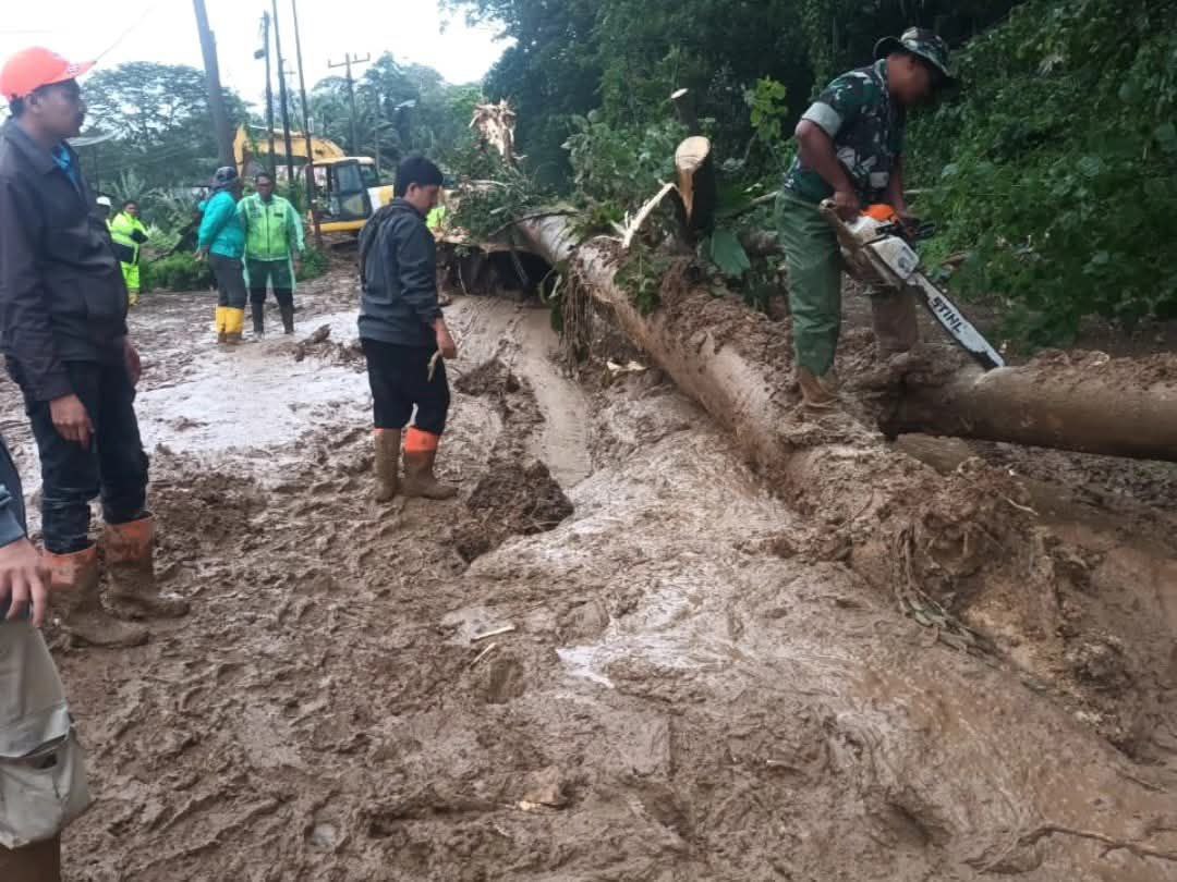 Padangsidimpuan - Personil TNI khususnya Kodim 0212/Tapsel bersama Polri, Pemda, BPBD, dan relawan terus berupaya membuka kembali jalur utama yang tertutup material longsor di sejumlah titik yang ada di Tapanuli Selatan (Tapsel) dan Mandailing Natal (Madina), Jum'at (28/11/2025)