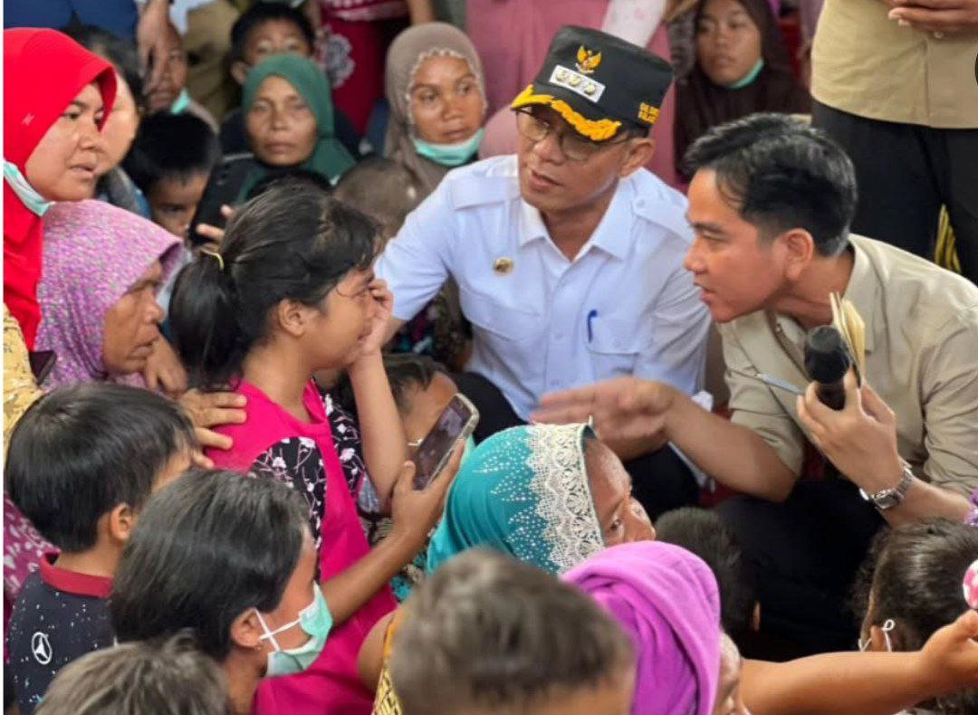 Dalam kunjungan tersebut, wapres Gibran membagikan makanan, kebutuhan dasar, hingga mainan kepada anak-anak yang berada di tenda pengungsian. Setelah sebelumnya berdialog dengan warga