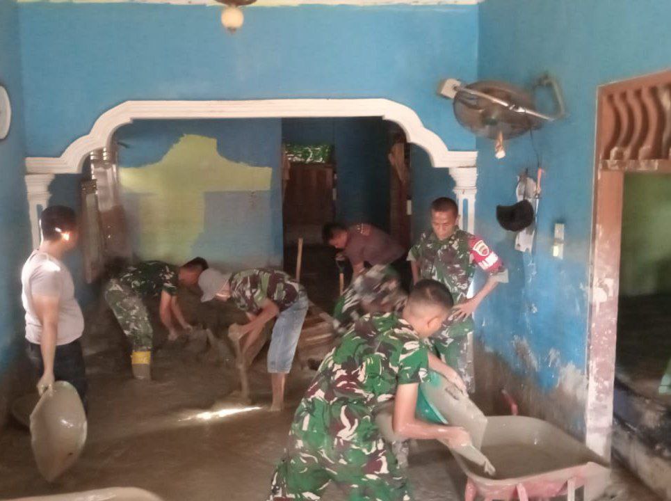 Babinsa Koramil 09/Sosa Bantu Bersihkan Rumah Warga yang Tertimbun Lumpur Pasca Banjir dan Longsor