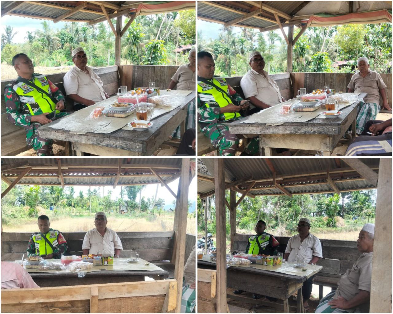 “hari kami bersilaturahmi melalui komsos dengan warga dan sesepuh di sini, tentunya kami akan dapat lebih mengenal masyarakat dan mengetahui perkembangan situasi seperti, geo, demo, konsos yang ada di wilayah desa binaan kami ini” ujarnya