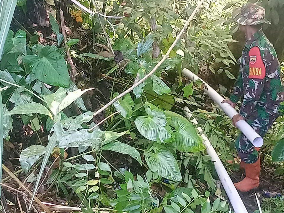 Babinsa Serka P. Napitupulu mengatakan, Pipa saluran air bersih milik Desa Pengkolan pecah dan terputus akibat dari material longsor yang terjadi saat terjadi bancana alam tanah longsor beberapa waktu lalu.