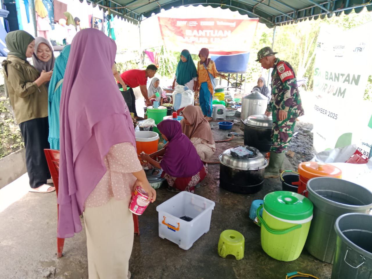Dengan jumlah pengungsi mencapai 373 jiwa, kebutuhan makanan dalam jumlah besar menjadi prioritas utama. Dalam kegiatan tersebut, Babinsa Serka P. Napitupulu turut memberikan pendampingan kepada masyarakat mengenai teknik memasak yang tepat sehingga nasi yang dimasak matang sempurna dan tidak keras