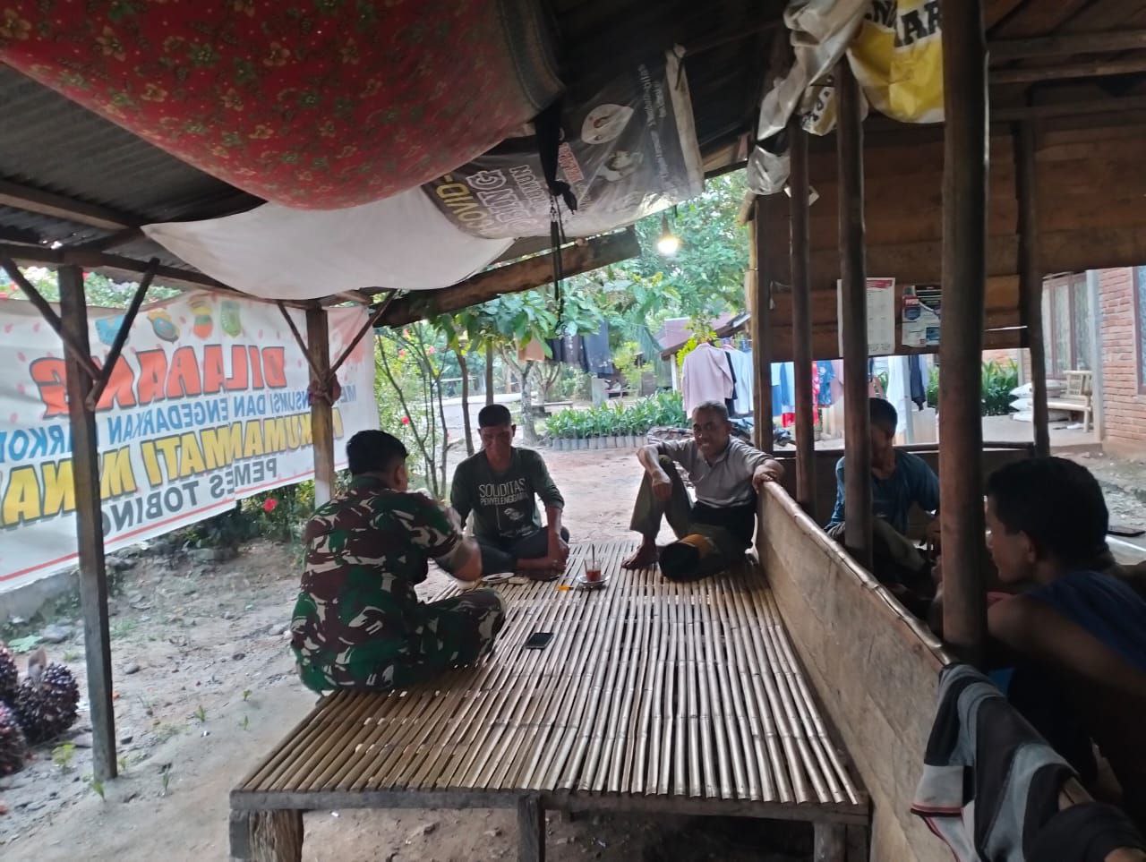 Sihapas Barumun - Babinsa Koramil 10/Barteng Kodim 0212/Tapsel Serka Sahrial Sihotang menjalin komunikasi sosial (komsos) dengan masyarakat di wilayah desa binaan Desa Padang Hasior Kecamatan Sihapas Barumun Kabupaten Padang Lawas, Sabtu (10/01/2026)