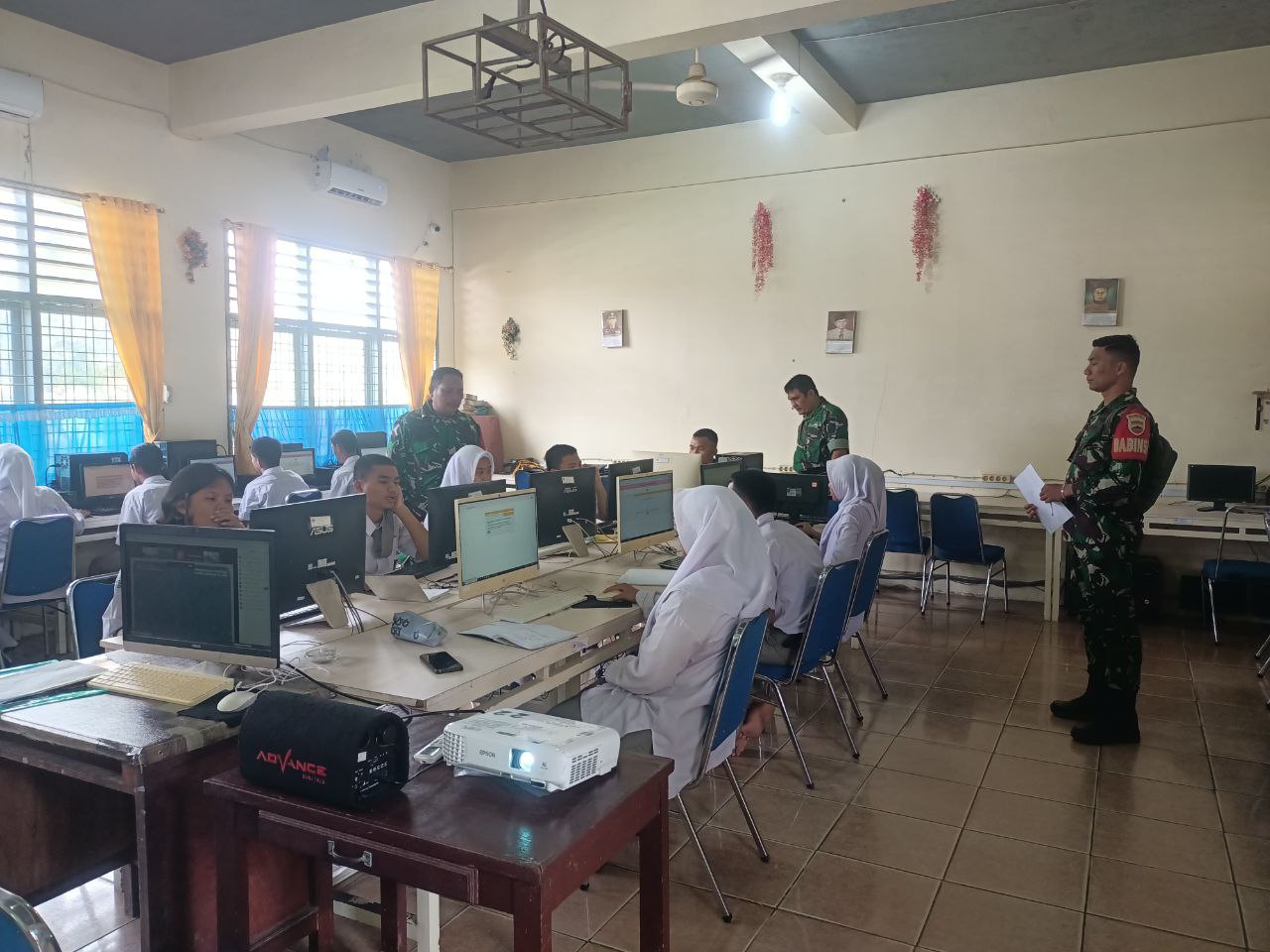 Pelaksanaan tes pemeriksaan Psikologi TNI turut diawasi oleh personel TNI dari Kodim 0212/Tapsel dipimpin Pelda Zulfian Hasibuan di Laboratorium Komputer sekolah masing-masing