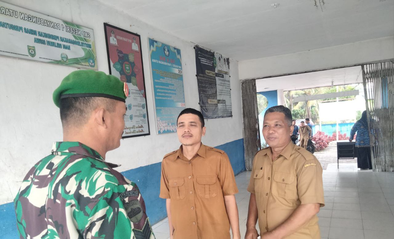 Panyabungan – Babinsa Koramil 13/Panyabungan Kodim 0212/Tapsel Serma Panusunan Siregar dan Sertu Harianto melaksanakan Komsos menjalin silaturahmi dengan para guru di SMPN 1 Panyabungan Utara Desa Mompang Jae Kecamatan Panyabungan Utara Kabupaten Mandailing Natal, Rabu (25/02/2026)