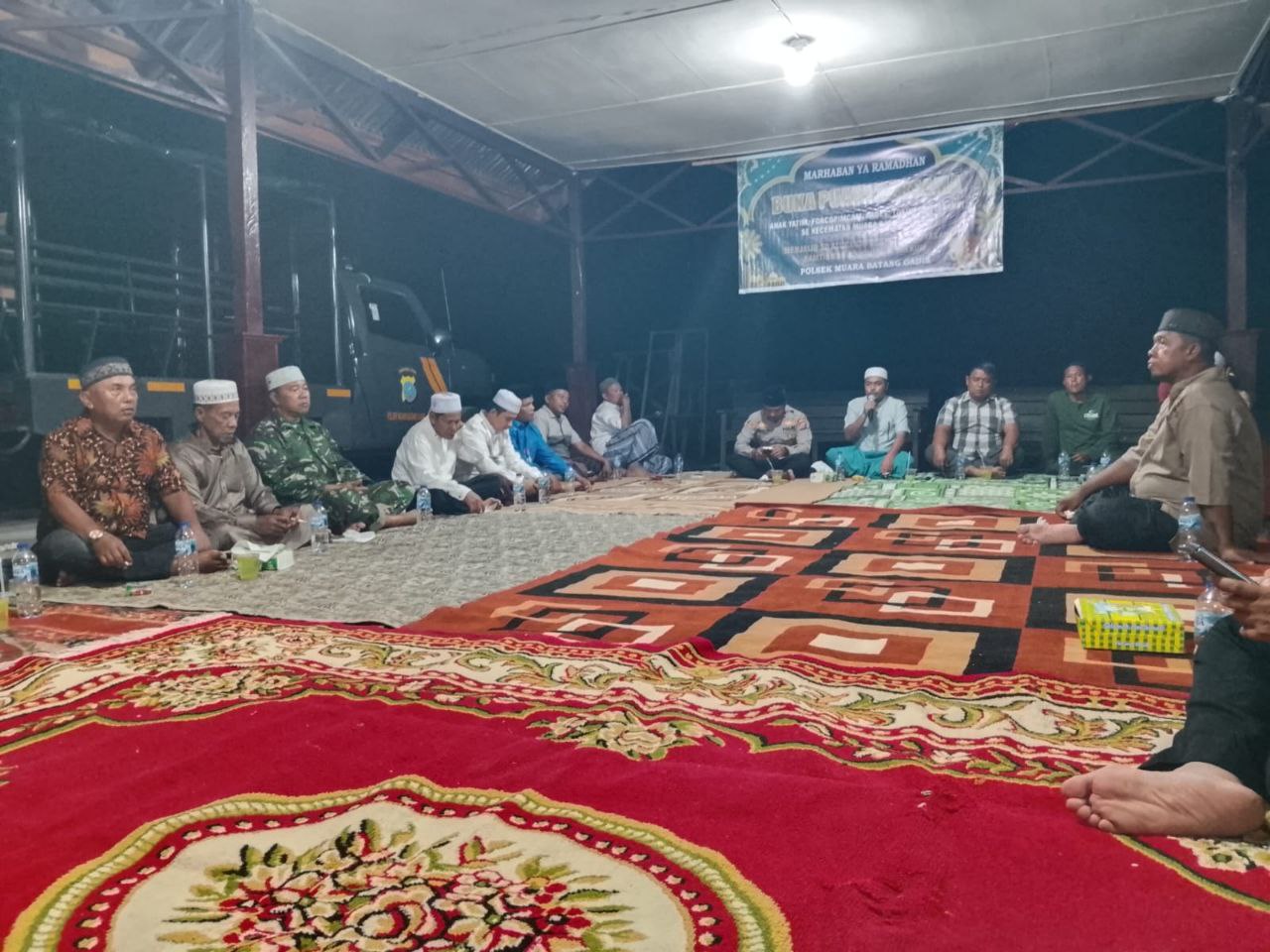 Muara Batang Gadis – Dalam suasana penuh kebersamaan di bulan suci Ramadhan, Babinsa Koramil 17/Natal Kodim 0212/Tapsel Serma Satimin dan Kopda Warso menghadiri kegiatan Buka Bersama di Polsek Muara Batang Gadis, Selasa (03/03/2026)