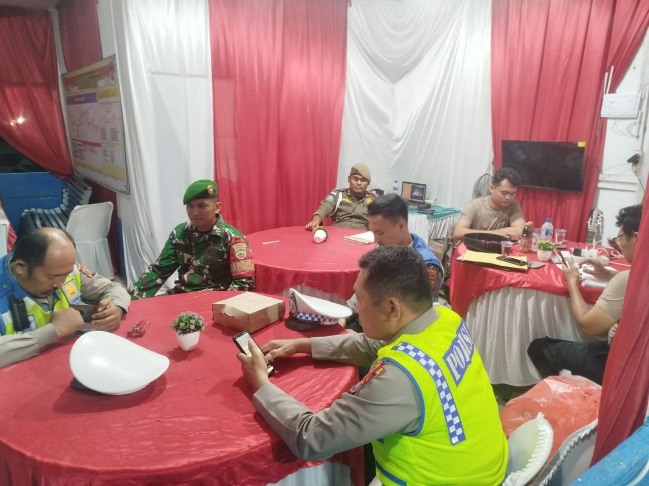 Di Pos Pengamanan Parsarian saat ini nampak personel dari Koramil dan Polres serta Dinas Perhubungan masih tetap bersiaga di Pos Pam Hari Raya Idul Fitri 1447 Hijriah malam hari ini, Senin (24/03/2026).