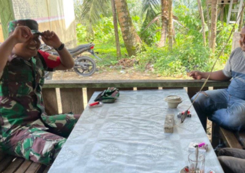 Barumun Baru - Babinsa Koramil 08/Barumun Kodim 0212/Tapsel Praka M. Fauzan Pulungan melaksanakan komsos, menciptakan rasa kehangatan dan kedekatan bersama warga di Desa Sabarimba Kecamatan Barumun Baru Kabupaten Padang Lawas, Jumat (10/04/2026)